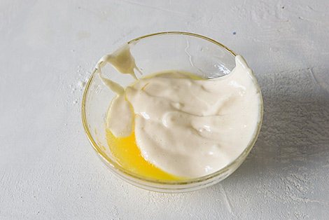 В отдельной миске соединяем горячее молоко и масло.